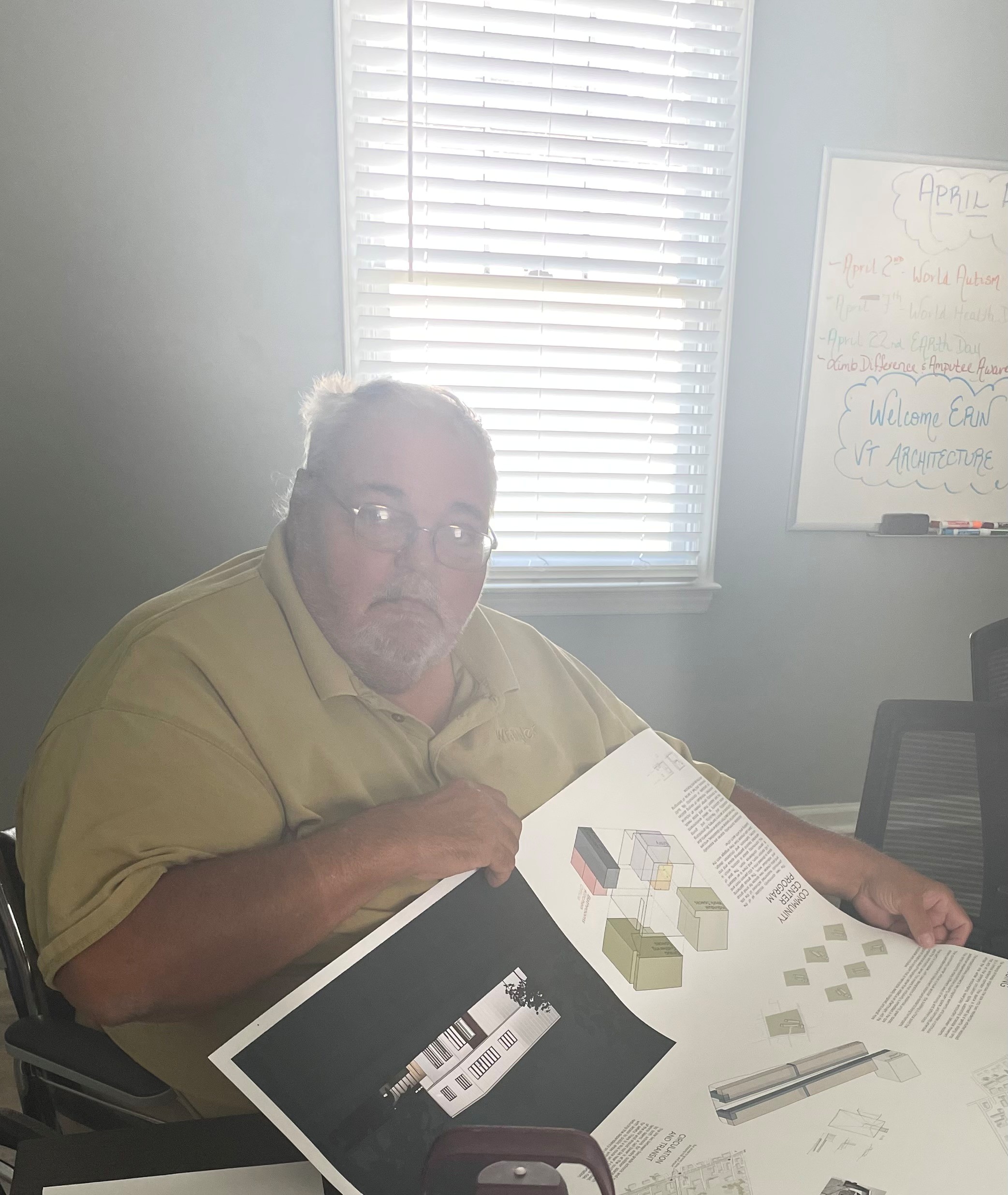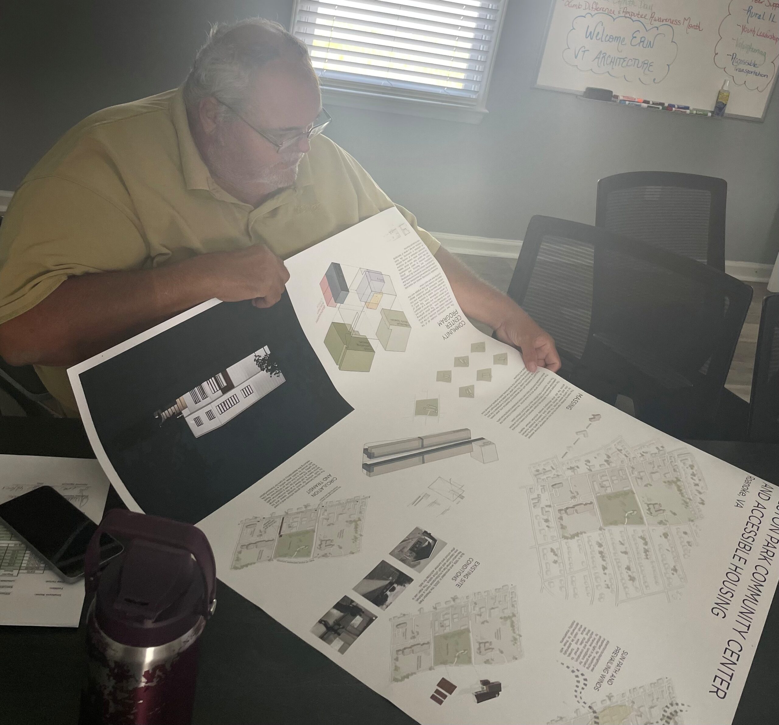 DRC Team meets with VT Architect student, Erin Harrigan, to discuss accessible design